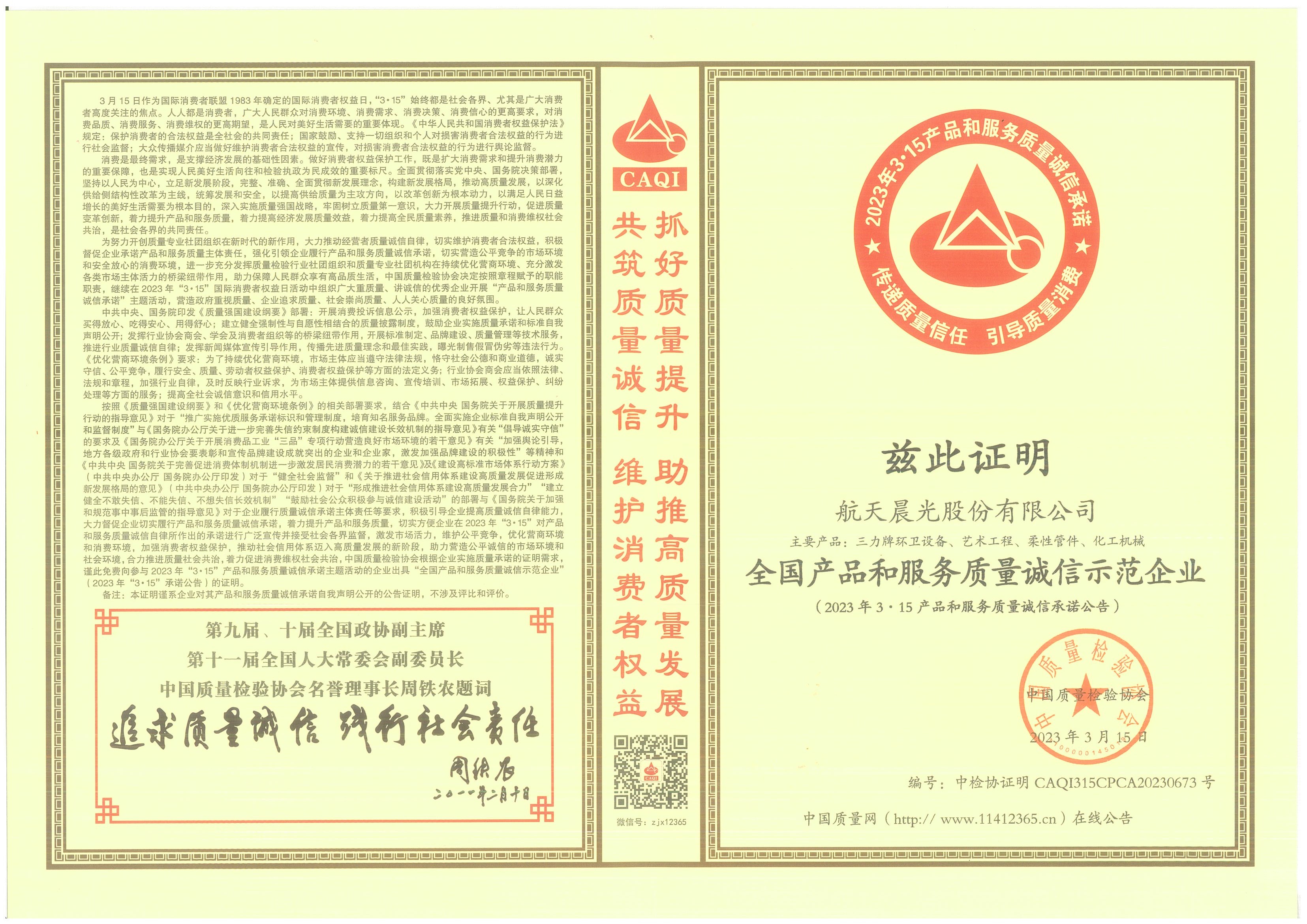 航天晨光股份有限公司  >  關(guān)于我們  >  榮譽(yù)資質(zhì) > 正文